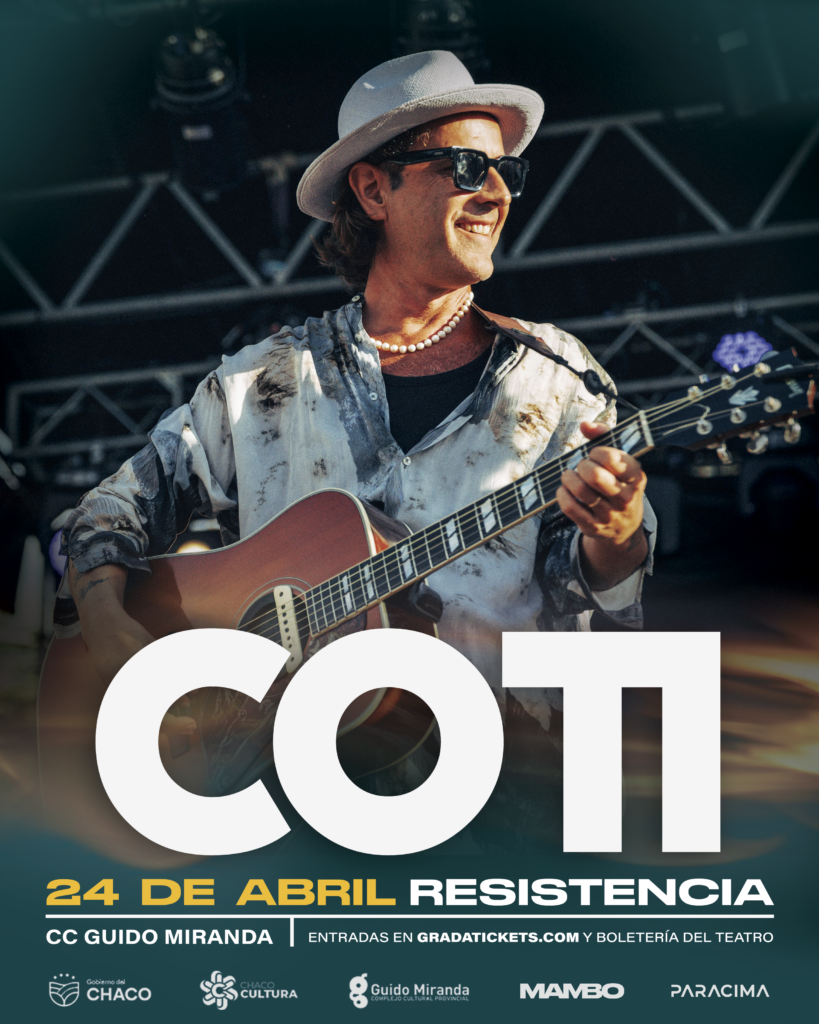 El reconocido músico y compositor Coti Sorokin regresa al nordeste argentino con dos presentaciones muy esperadas: el 23 de abril en el Teatro Oficial Juan de Vera y el 24 de abril en el Complejo Cultural Guido Miranda. Las entradas para el show en Corrientes ya están disponibles a través de la plataforma weepas.ar, mientras que para la fecha en Resistencia pueden adquirirse mediante gradatickets.com.