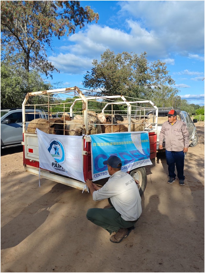 La jornada continuó en la comunidad Qom Le’ec, donde se entregaron 18 ovejas reproductoras de raza Criolla Formoseña y 20 vellones de lana destinados a artesanas locales.