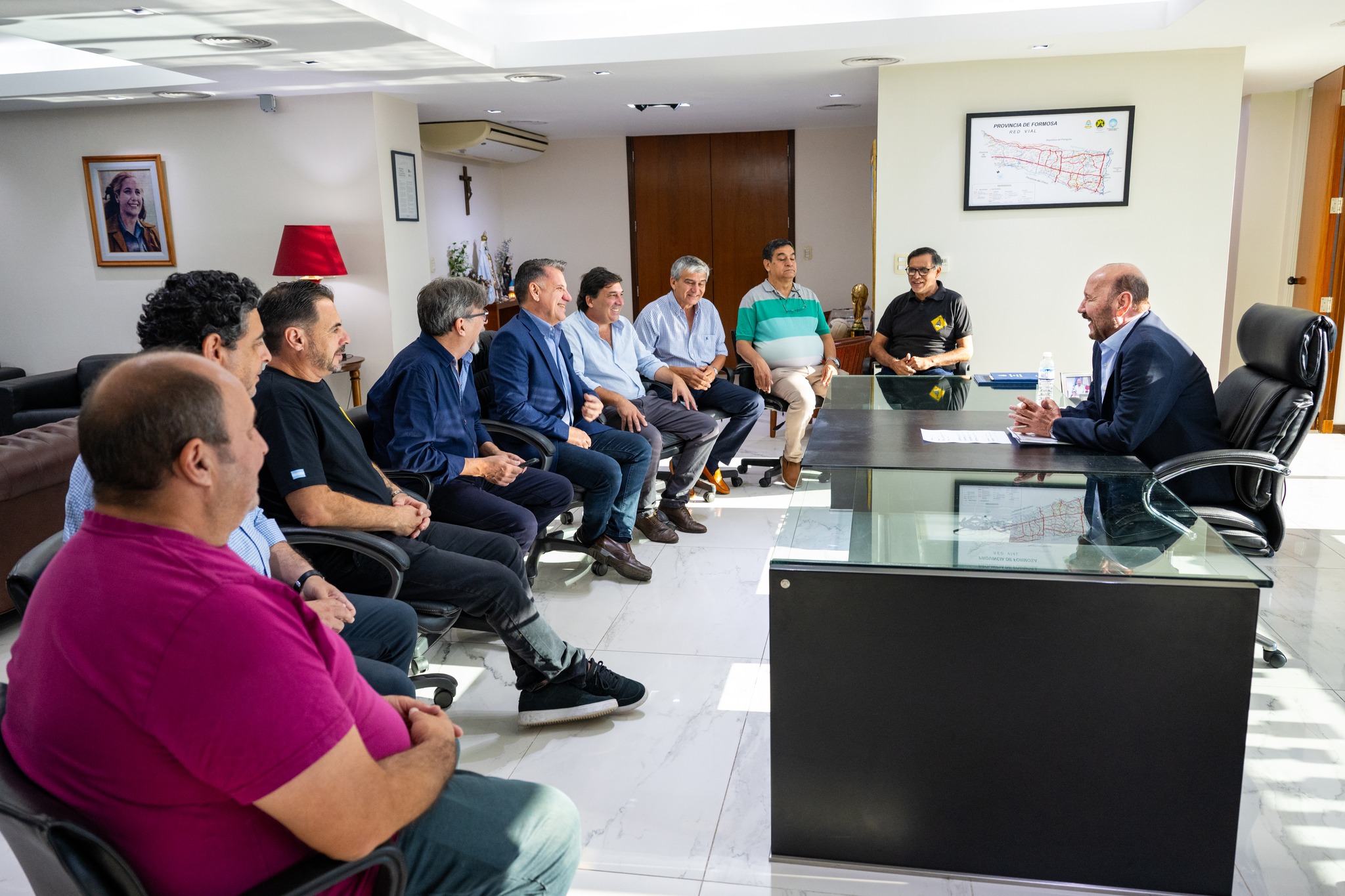 En Casa de Gobierno, este jueves 9, el gobernador de Formosa, Gildo Insfrán, mantuvo una reunión con representantes de diferentes gremios vialeros de la provincia.
